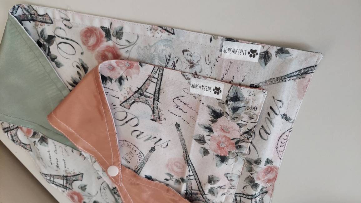 Depending on the fabric style, our bandanas are made of 2 reversible fabrics(Cotton, satin, or fleece) combined into one, giving you 2 different bandanas for a reasonable price! We finish the product with a double stitching and depending on the bandana prints, the thread stitching may be in a metallic gold or silver, which makes the final touch look superb!