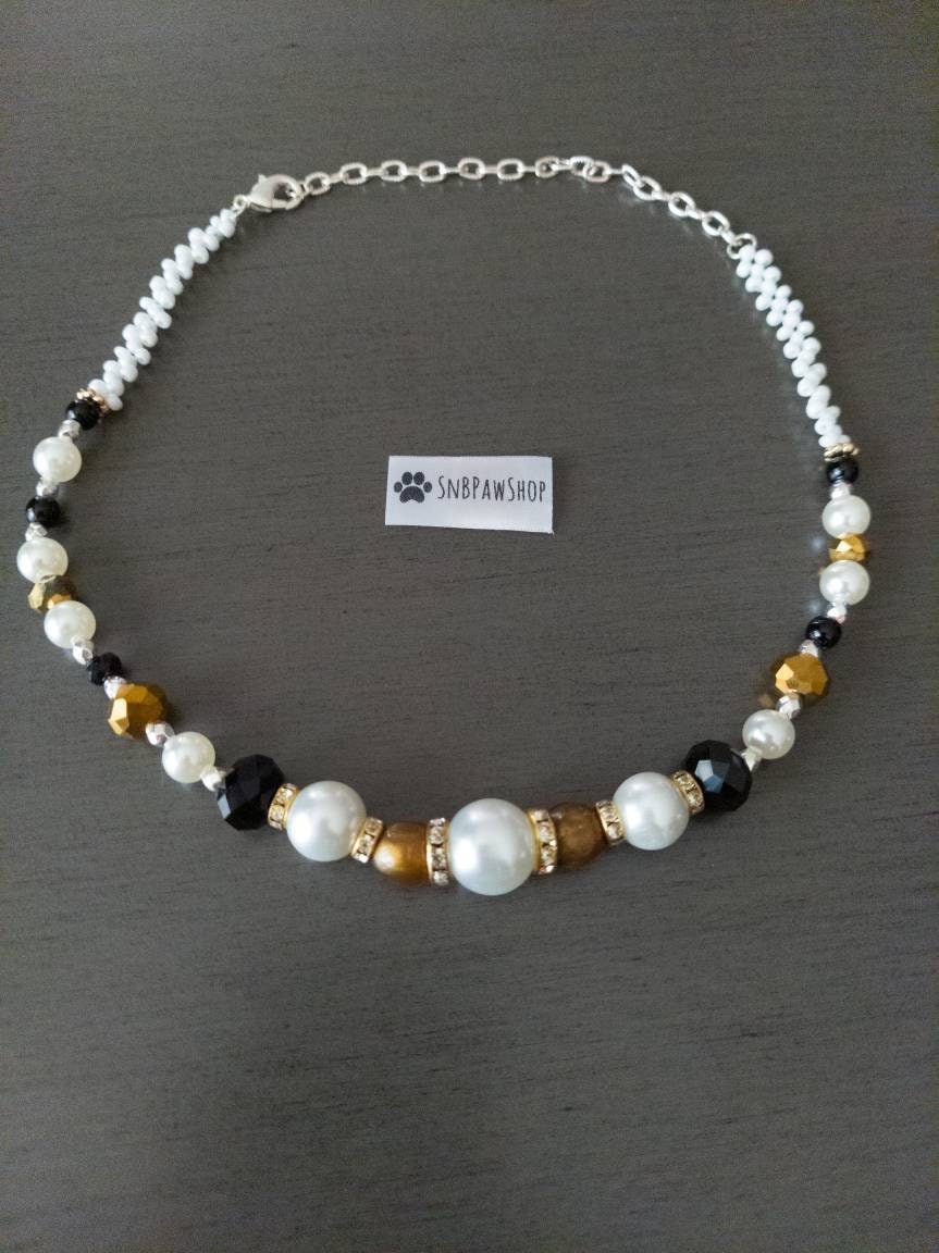 Handmade necklaces for your dog or cat! Please measure your pets neck loosely. The necklace will come with a 1" extension Made with smaller beads on the side - back to make it more comfortable for your pet to lie down