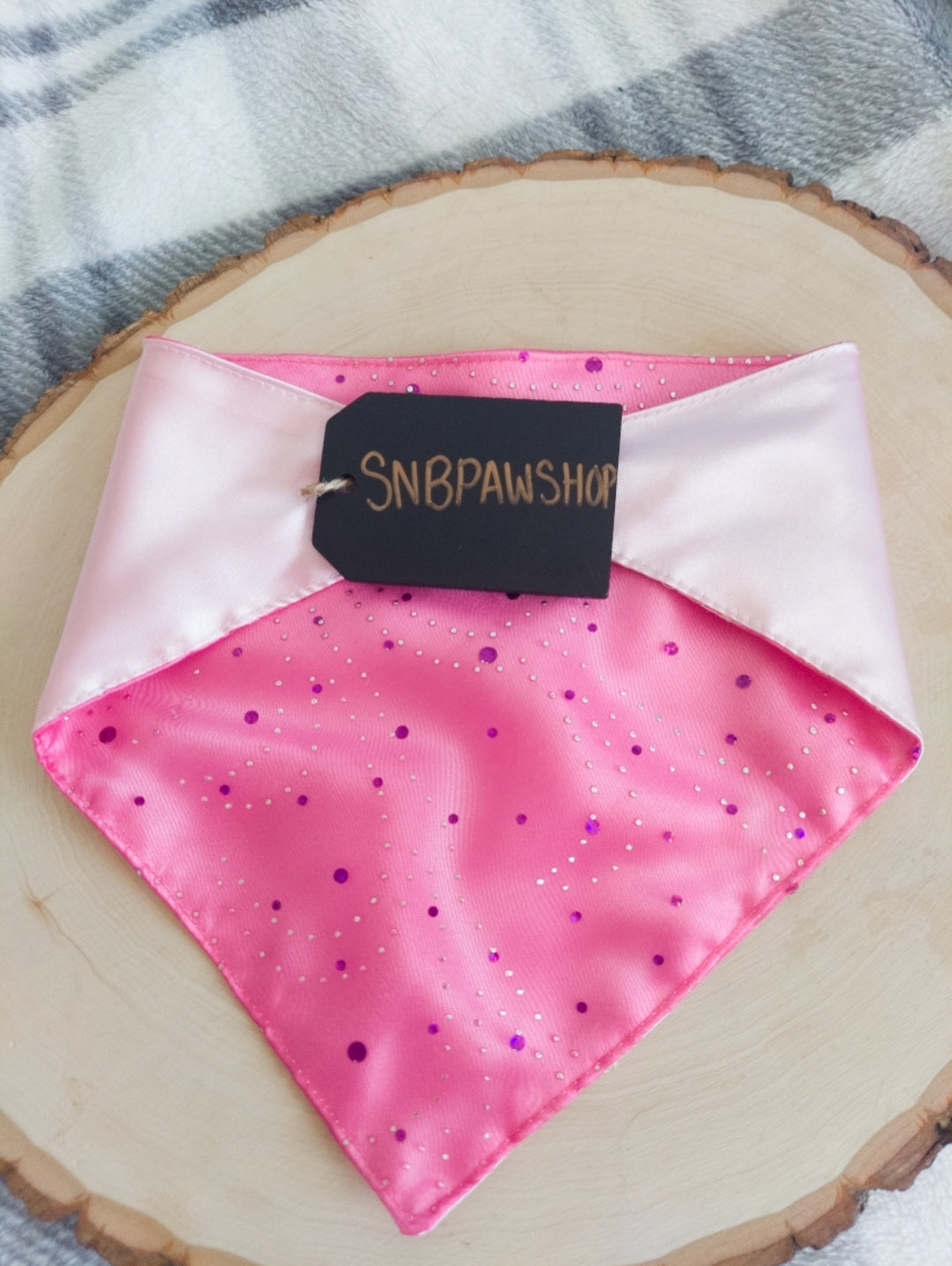 This bandana is part of our party set collection. It's made with satin fabric that's super soft & topped off with a glitter mesh