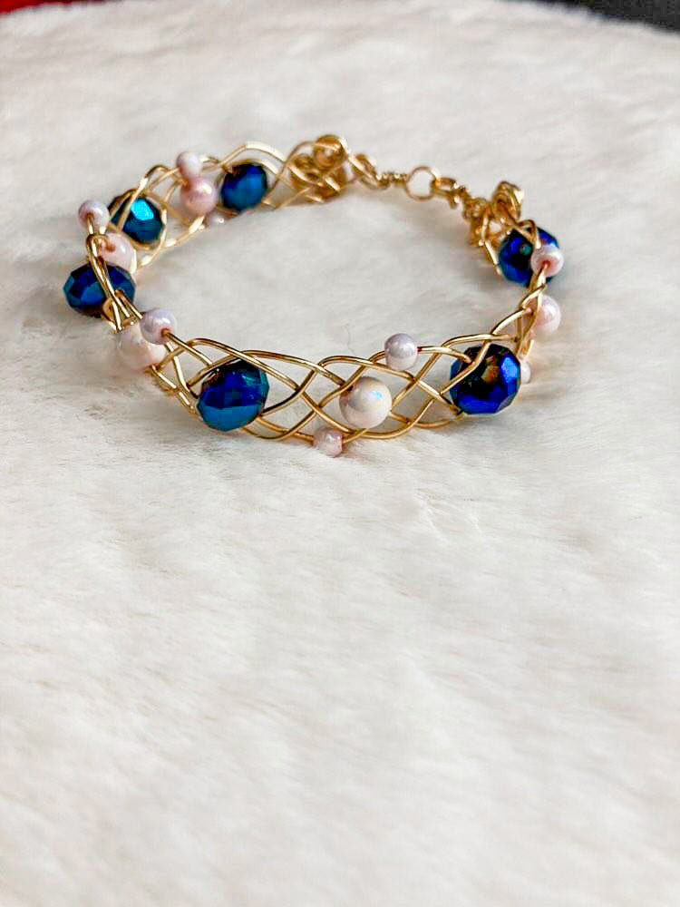 Style your outfits with this cute bracelet! This beaded bracelet is handmade with love! It's made with a wire cord and a handmade finishing clasp.