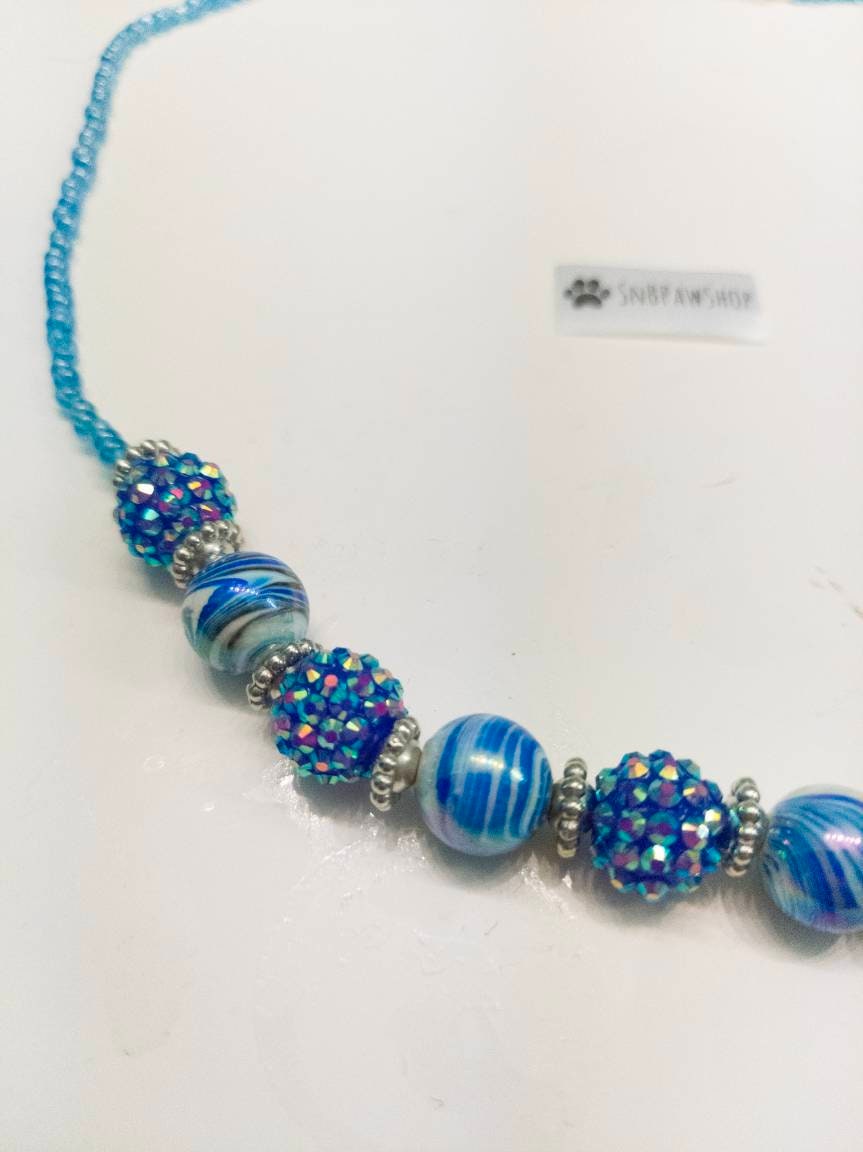 Handmade necklaces for your dog or cat! Please measure your pets neck loosely. The necklace will come with a 1" extension Made with smaller beads on the side - back to make it more comfortable for your pet to lie down
