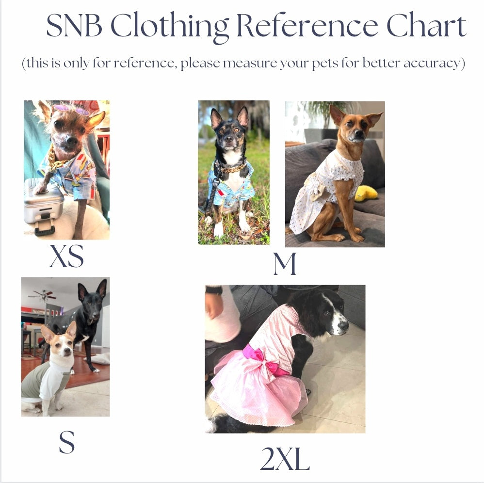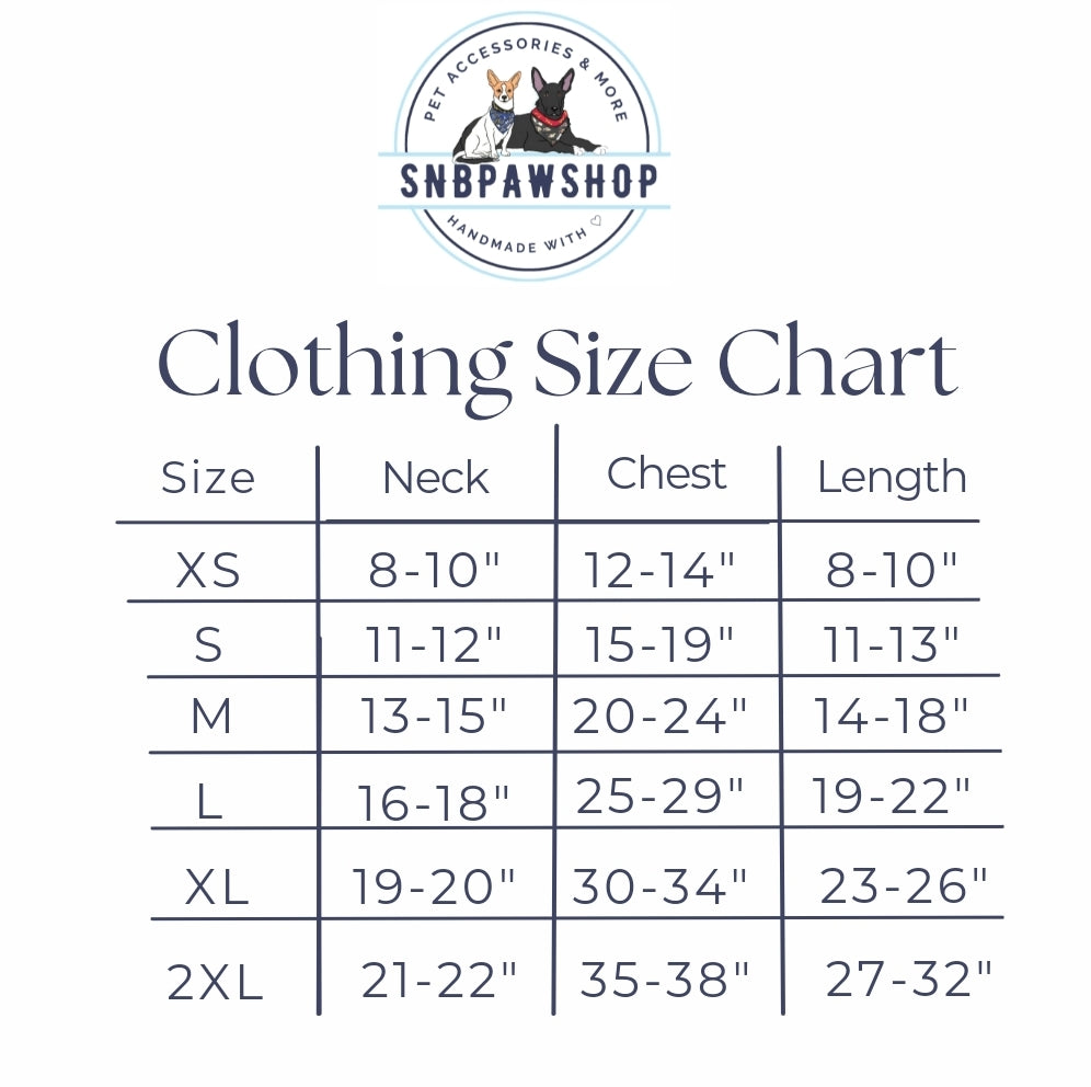 Please check the sizing chart to have an idea of what size to purchase and once you purchase, please email me your dog's or cat's size measurement! Email: @snbpawshop