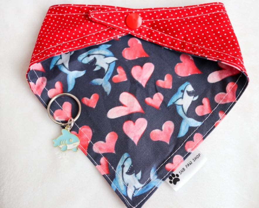 Pair this bandana with our matching shark charm pet tag! Link below: