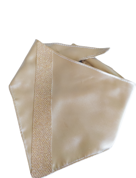 This bandana is part of our party set collection. It's made with satin fabric that's super soft. We add trimming that makes the final touch look very elegant.