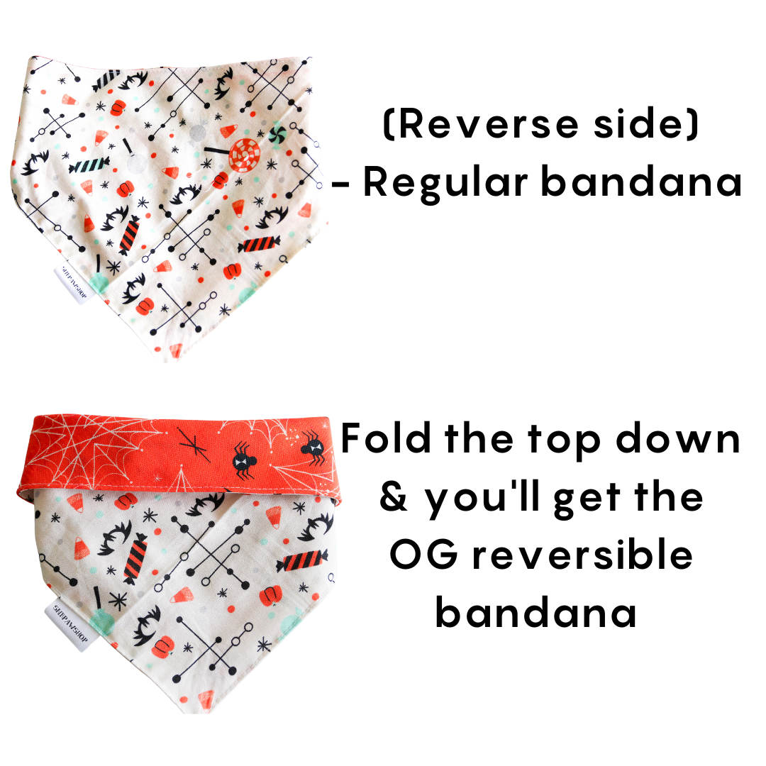 This Halloween, let your furry friend join the party with this bandana! It's perfect for getting your pup in the spooky spirit. With a few added treats, your pup can be part of the festivities this year!