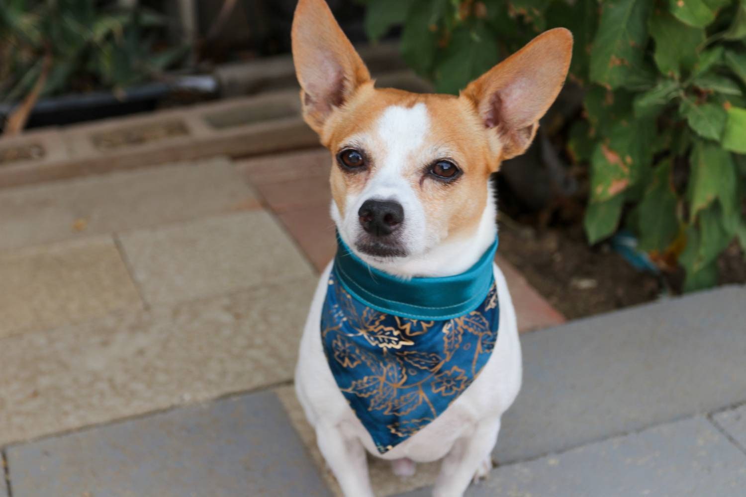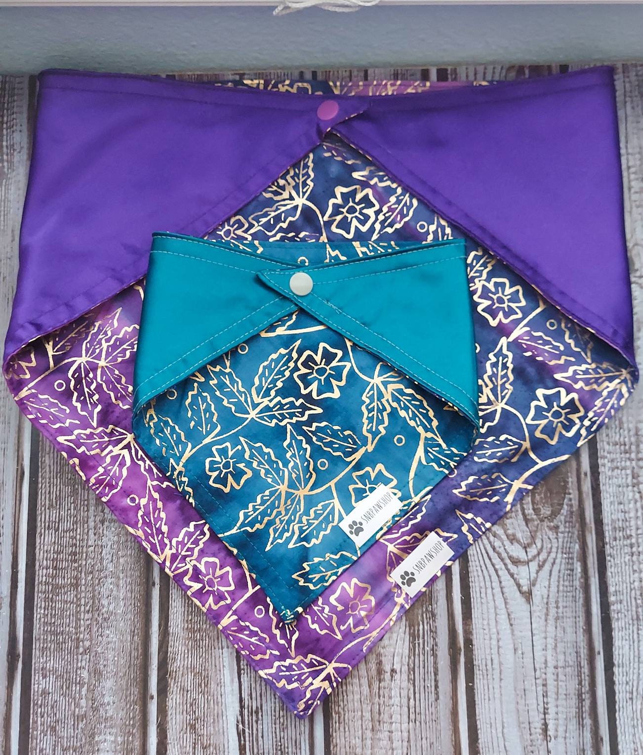 This bandana is part of our Zen Garden Collection! Our leafy groove bandana gives a very elegant and rich vibe to it. It has a metallic gold sheen to it and it's made with cotton and satin fabric! If you would like your pets to look elegant and cute, this bandana is for you! There are two color options so it's perfect for duo pets to match!